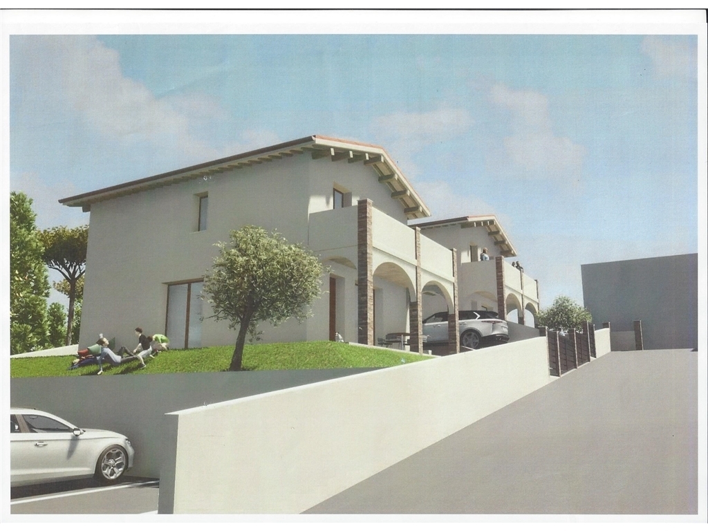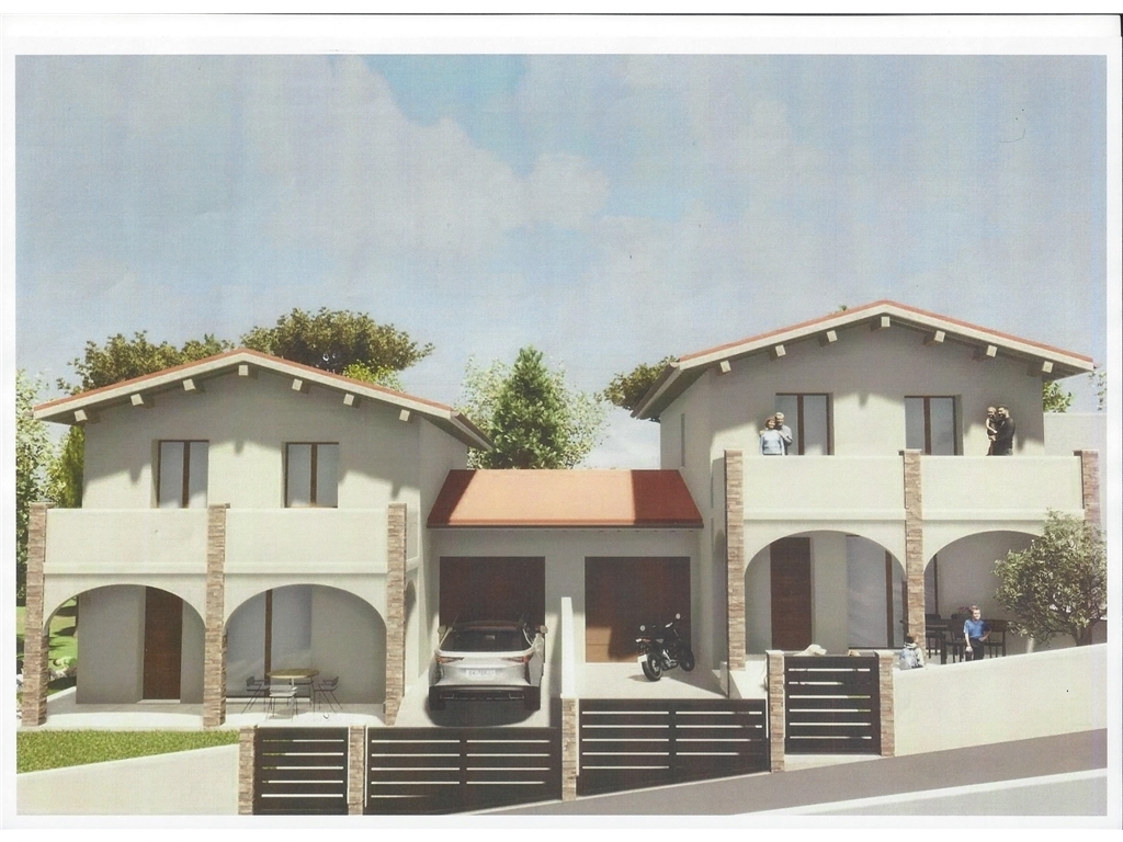 In contesto molto tranquillo, collinare con vista sulla campagna, vendesi due villette in bifamiliare di nuova costruzione in classe A4. Le unità immobiliari sono così composte: p. terra ampio giardino carrabile su due o tre lati, grande garage collegato alla zona giorno, grande zona giorno di mq. 55 circa, bagno, ripostiglio, p. primo tre camere da letto, due bagni, terrazzo con vista panoramica, oltre due posti auto esterni. Ottime rifiniture personalizzabili, possibilità di personalizzare la divisione degli spazi, impianto fotovoltaico 6 Kw a unità con possibilità di accumulo, cappotto termico, riscaldamento a pavimento a pompa di calore. Queste abitazioni si distinguono per le dotazioni tecniche di alta qualità, pensate per garantire massimo comfort ed efficienza energetica. Consegna Gennaio 2027. - CLASSE ENERGETICA IN ELABORAZIONE