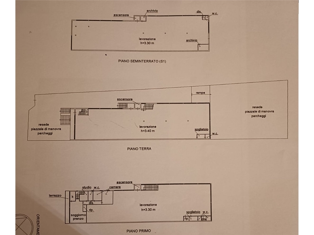 Vendesi capannone libero su tre lati di mq. 2.100 circa con piazzale esclusivo su tre lati di mq. 1.500 circa. L'immobile si suddivide su tre piani collegati da montacarichi ed è cosi composto: -al piano seminterrato grande magazzino di mq. 700 h 3,5 m. con ufficio, bagno, e piazzale frontale di mq. 500; -al piano terra grande laboratorio di mq. 700 con piazzale frontale di mq. 500 circa; -al piano primo grande laboratorio di mq. 580 con tripli servizzi e uffici con accesso laterale e parcheggio esterno oltre a un appartamento di 5 vani per mq. 120. Possibilità di acquistare tutta la proprietà a 930.000, oppure di acquistare le singole porzioni: -Magazzino al piano seminterrato con piazzale 270.000; -Laboratorio al piano terra con piazzale 300.000; -Laboratorio al piano primo con parcheggio 250.000; -Appartamento al piano primo 150.000; - CLASSE ENERGETICA IN ELABORAZIONE